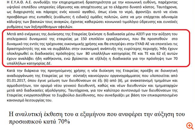 Προφανώς είναι κυβερνητική επιλογή η διοίκηση της εταιρείας αντί των παραπάνω επιλογών να αυξήσει το προσωπικό κατά 70% χωρίς να υπάρχει η προοπτική να αυξήσει ανάλογα τον κύκλο των εργασιών.