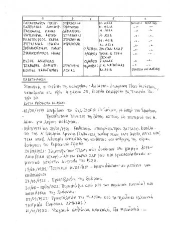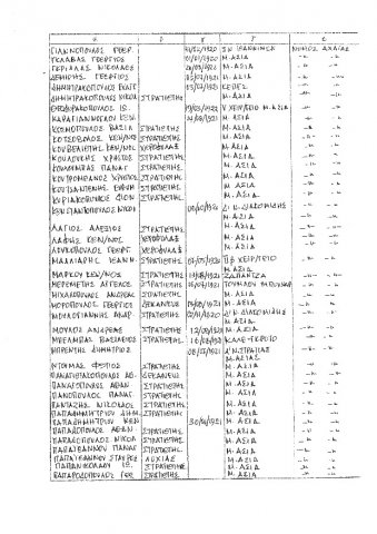 Στον πίνακα που ακολουθεί συμπεριλαμβάνονται οι πεσόντες Αιγιαλείς και Καλαβρυτινοί κατά τη Μικρασιατική εκστρατεία 1919-1922 … Ενώ το προσεχές διάστημα θα αναφερθούμε και σε άλλους πολέμους όπως Ελληνοτουρκικό (1897), Βαλκανικούς (1912-1913), Α΄ Παγκόσμιο (1914-1919) και Κύπρο (1974).