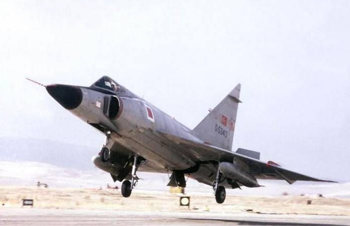 Απογειώθηκαν και ο Νο2 ήταν μπροστά ακολουθώντας τις οδηγίες του ραντάρ εδάφους Τζόκερ, με το Νο1 να διατηρεί οπτική επαφή. Το Τζόκερ ειδοποίησε τον Νο2 για εχθρικό σχηματισμό 2 αεροσκαφών. Μεταξύ Λήμνου και Αγ. Ευστρατίου έγινε οπτική επαφή με το ζεύγος των τουρκικών μαχητικών τύπου F-102 ενώ είχαν ταχύτητα περίπου 450 μίλια.