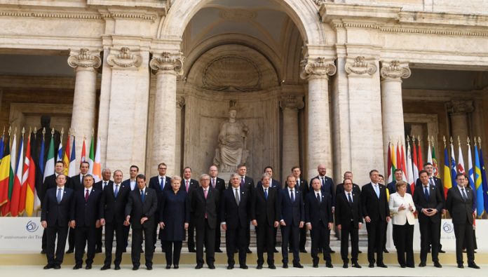 Στην επετειακή Σύνοδο της Ρώμης, υπεγράφη από τους 27 Ευρωπαίους ηγέτες η Διακήρυξη της Ρώμης.