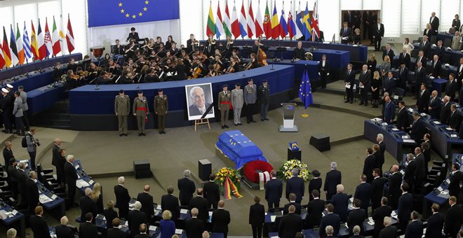 Στην έδρα του Ευρωπαϊκού Κοινοβουλίου, στο Στρασβούργο, αρχηγοί κρατών και κυβερνήσεων, εν ενεργεία και πρώην, ανώτατοι εκπρόσωποι των ευρωπαϊκών θεσμών, φίλοι και συνοδοιπόροι, αλλά και πρώην πολιτικοί αντίπαλοι, όλοι μαζί αποχαιρέτισαν τον Χέλμουτ Κολ με μιαν ευρωπαϊκή τελετή που έγινε για πρώτη φορά στην ιστορία της Ε.Ε.