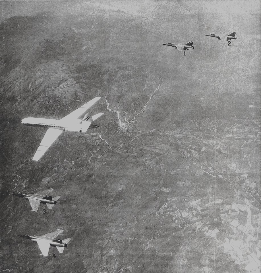 28 Μαΐου 1979 Το πολιτικο αεροσκαφος στο κεντρο ειναι το Προεδρικο Αεροσκαφος της Γαλλικης Δημοκρατιας τυπου Sud SE 210 Caravelle και μεταφερει τον τοτε Γαλλο Προεδρο Βαλερί Ζισκάρ ντ’ Εσταίν προσκεκλημένο της Ελληνικης Κυβερνησεως στην Αθηνα.