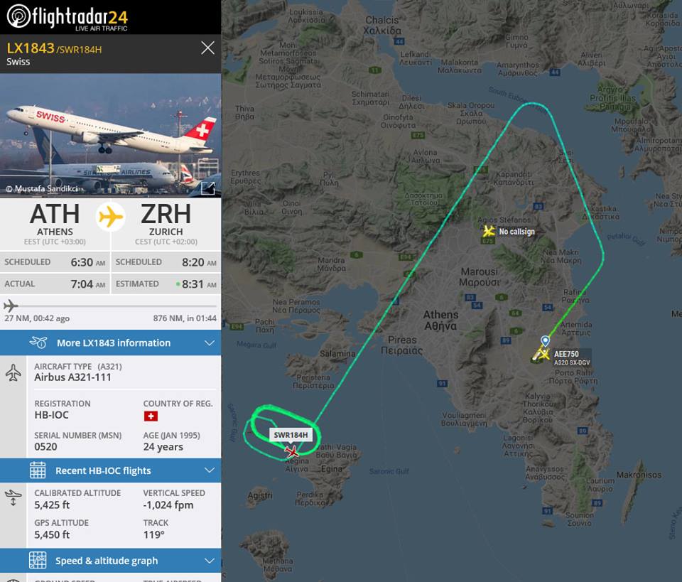 Κατά τη πτήση Αθήνα Ζυρίχη παρουσιάστηκε πρόβλημα σε πτήση της Swiss σήμερα το πρωί πάνω από την Αίγινα το αεροπλάνο επέστρεψε τελικά με ασφάλεια στο Ελευθέριος Βενιζέλος